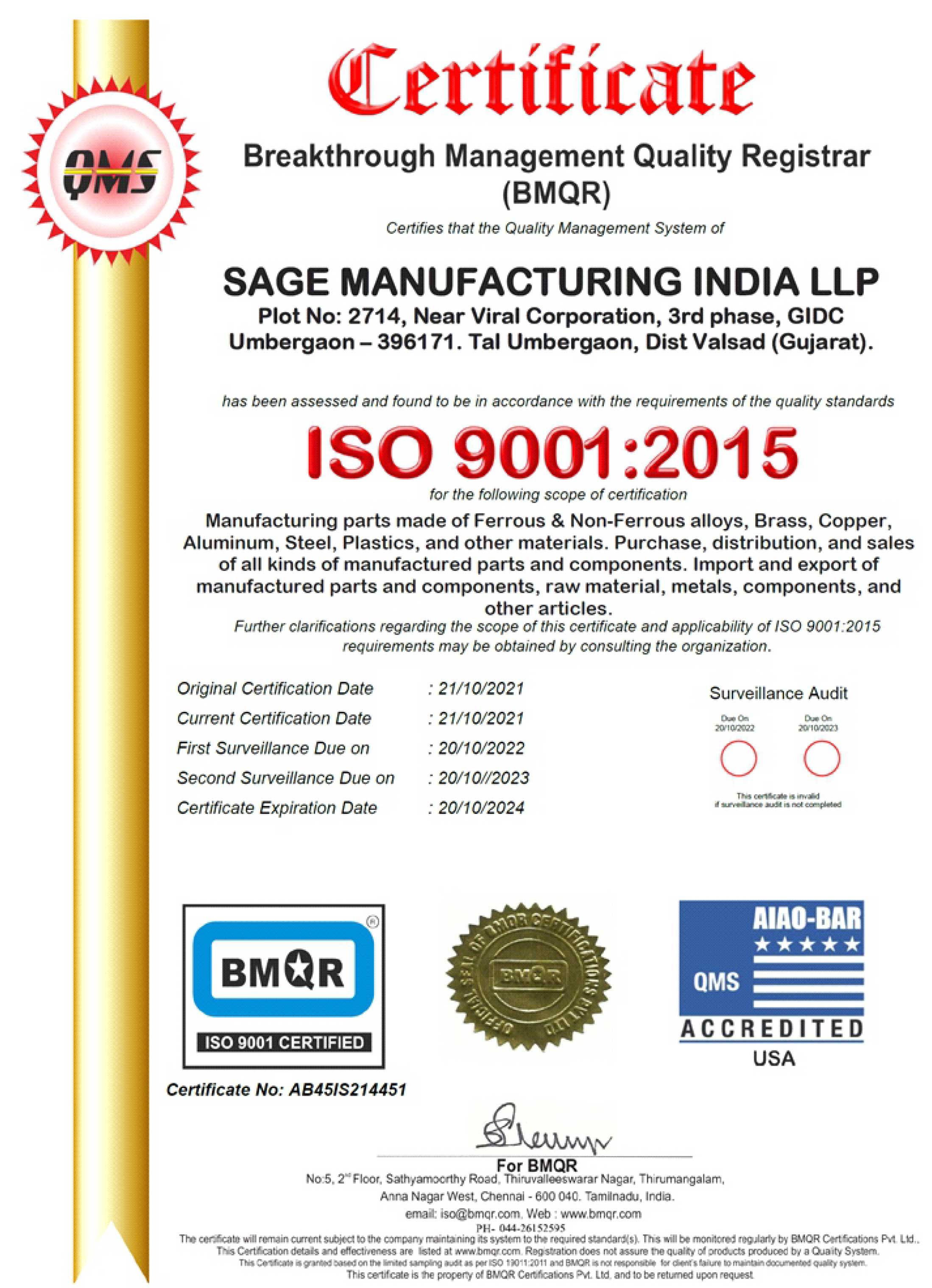Sage Manufacturing India llp, is a leading manufacturer of wide range of Electrical connectors, Earthing & Lighting accessories, Fittings & Precision Stamping Parts. We are ISO certified & registered Export house from India. Our valuable clients have certified us for UL Listed, based on our Setup & Quality of product range. As a company with deep expertise, we have always offered to our customers with Products of core Manufacturing competencies, Quality Standards, product technical testing’s solutions, Delivery commitments tailored to export market. SMI can manufacture any Product with material grade of Copper, Aluminium, Aluminium Bronze, Phosphorus Bronze, Silicon Bronze, Gunmetal, and Brass. SMI is capable of benefiting customer with wide range of plating capabilities on the Parts. We currently do Tin Plating, Bright Copper Dip, Copper plating, Nickel plating, White Zinc plating, Steel Spring Treatment. We are also capable of doing Plating in Gold & Silver.